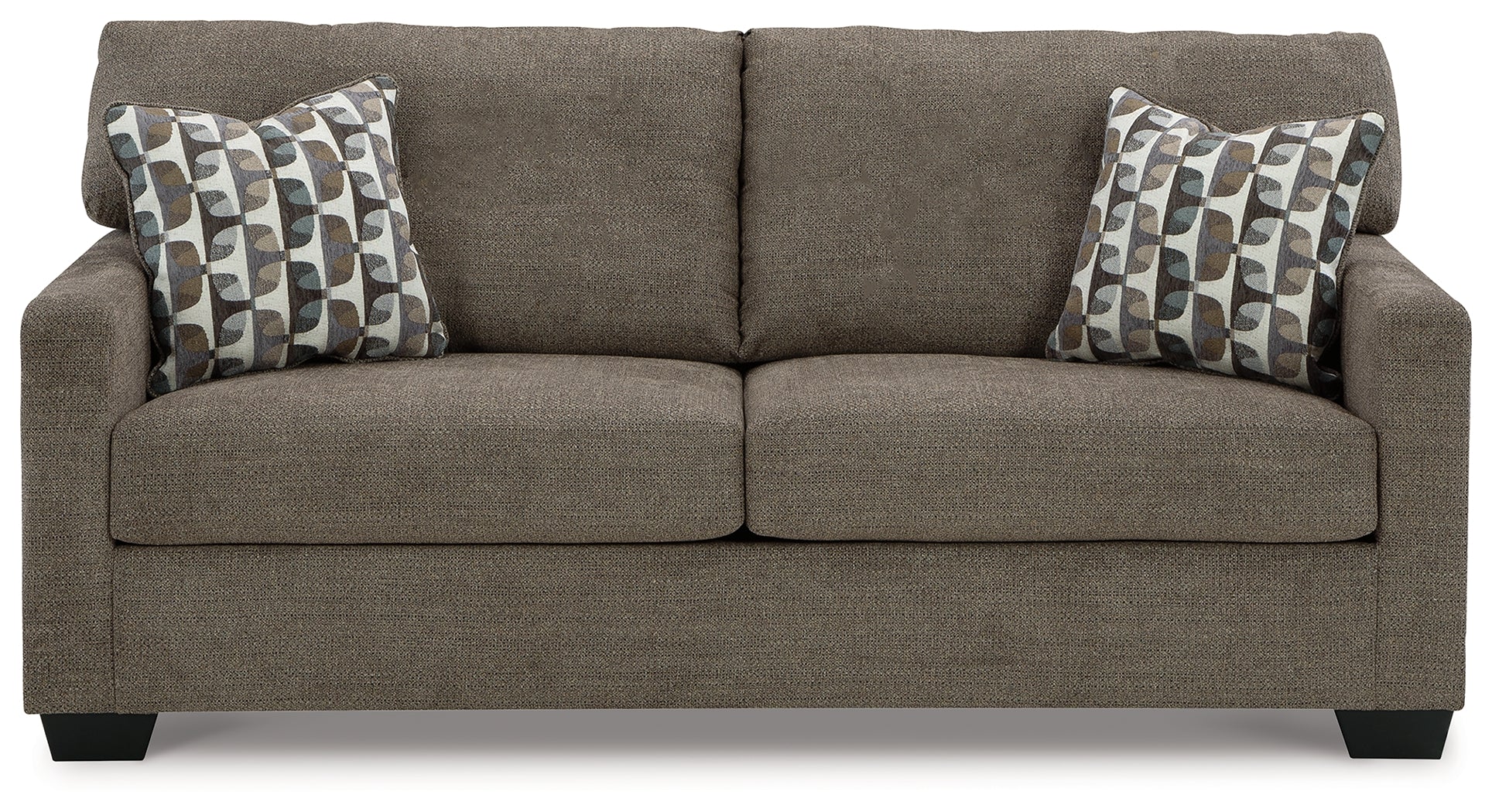 Reliable comfort, reimagined. Suitable for a variety of spaces, this sofa invites you to say hello to approachable, everyday style. It expertly balances classic details with a contemporary structure. Satisfyingly soft, chocolate-hued upholstery rounds out the relaxed feel of this smartly designed piece.