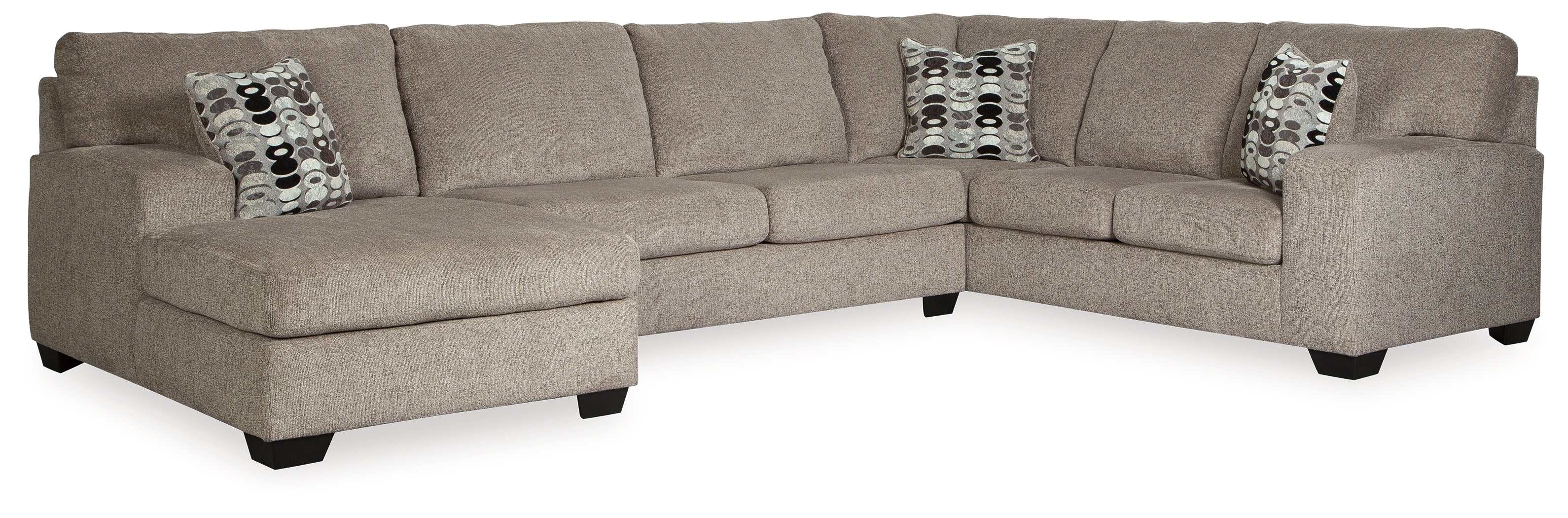 Includes 3 pieces: left-arm facing corner chaise, armless loveseat and right-arm facing sofa,