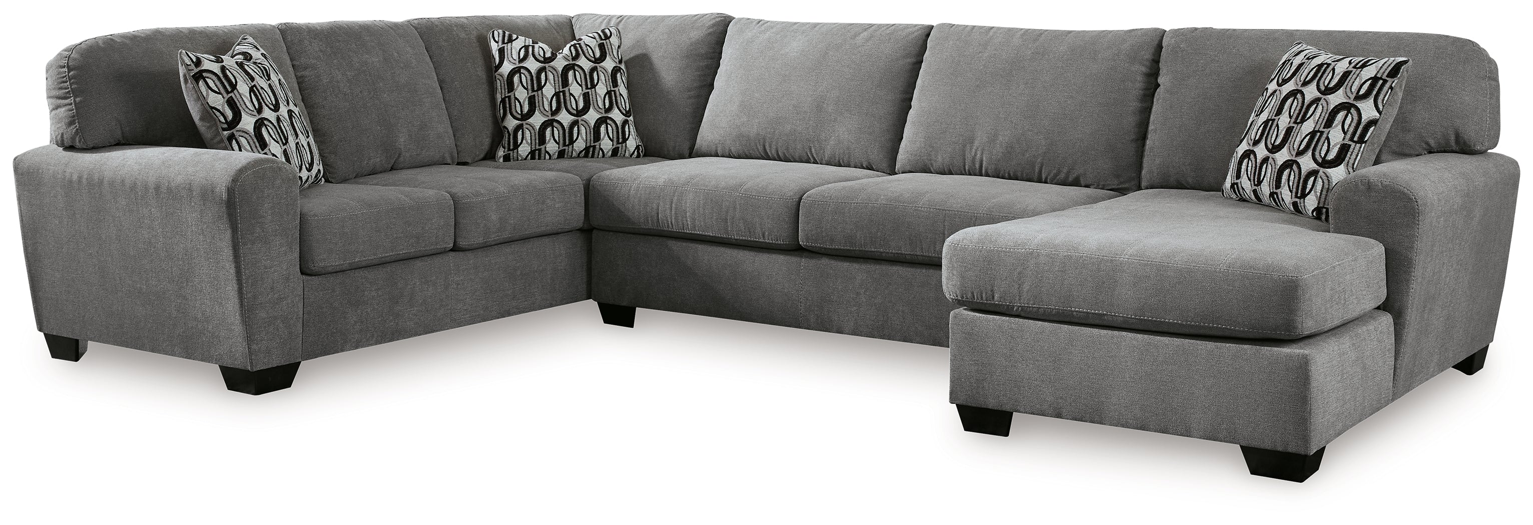 Includes 3 pieces: left-arm facing sofa, armless loveseat and right-arm facing corner chaise,