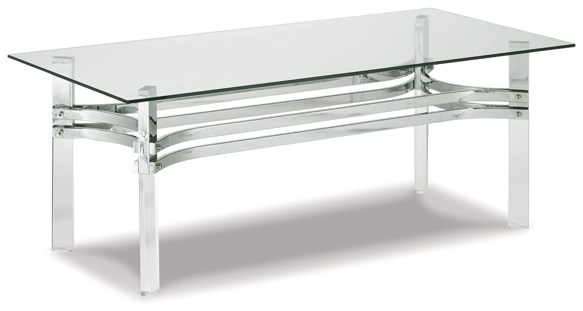 If you long for more transparency, you’re sure to love this coffee table. Pairing a clear glass tabletop with see-through acrylic legs, it’s a mastery in minimalism. Chrome-tone stretcher takes the contemporary vibe to the max.