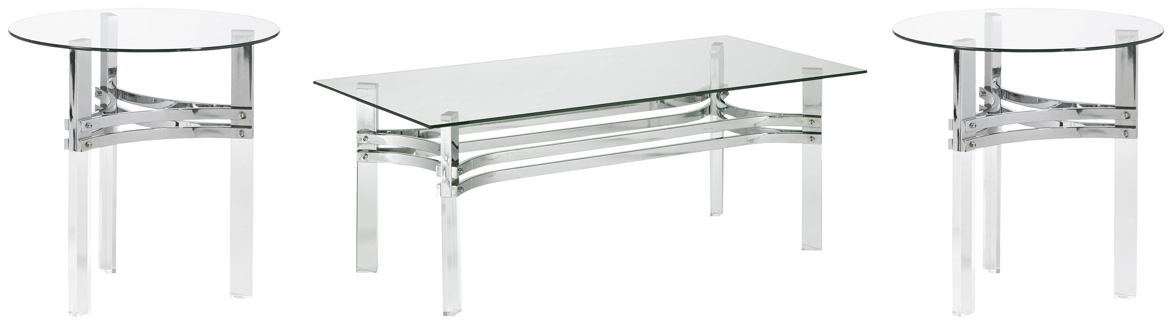 If you long for more transparency, you’re sure to love this occasional table set. Pairing a clear glass tabletop with see-through acrylic legs, it’s a mastery in minimalism. Chrome-tone stretcher takes the contemporary vibe to the max.