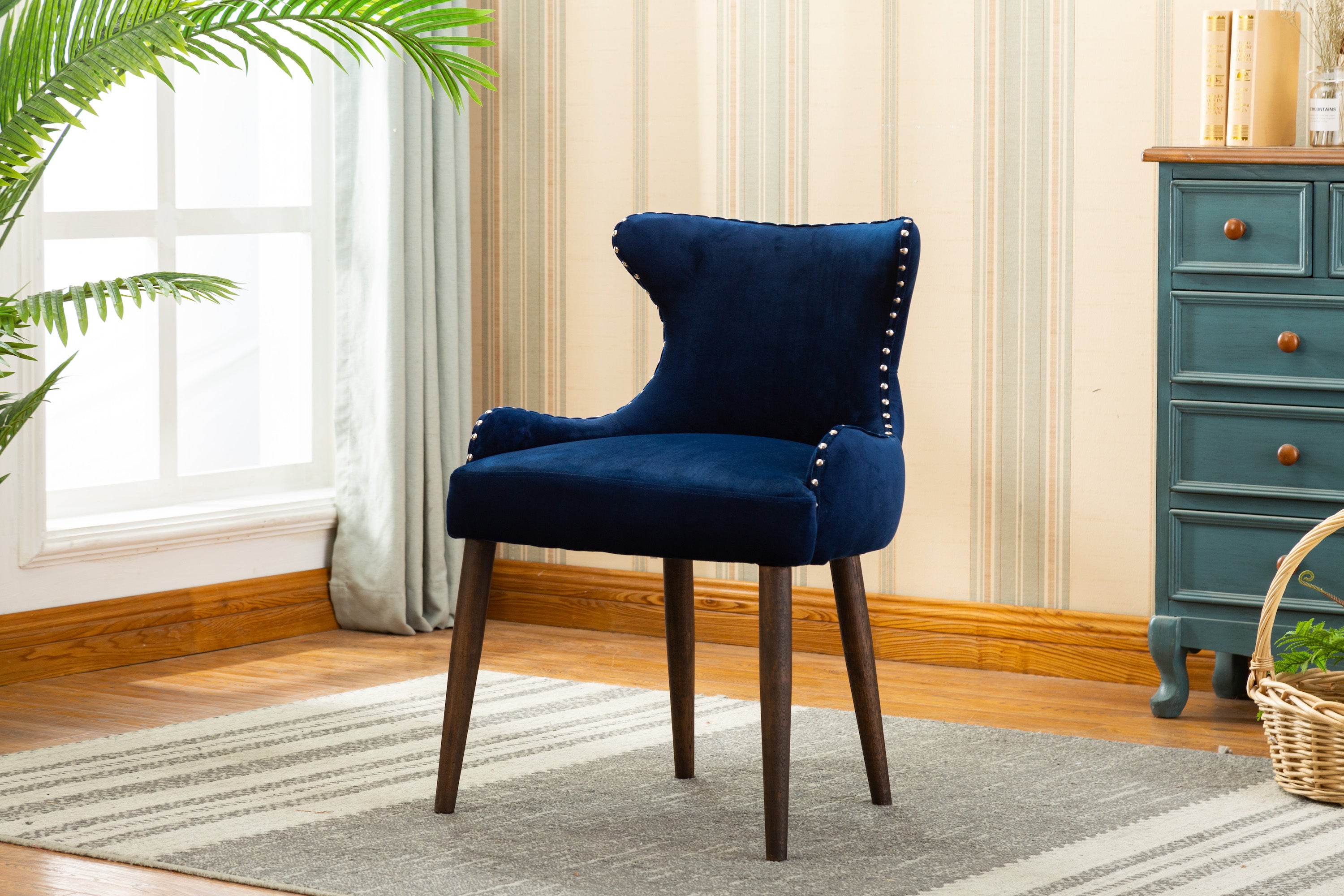 BLUE FABRIC CHAIRS WITH SILVER NAILHEAD