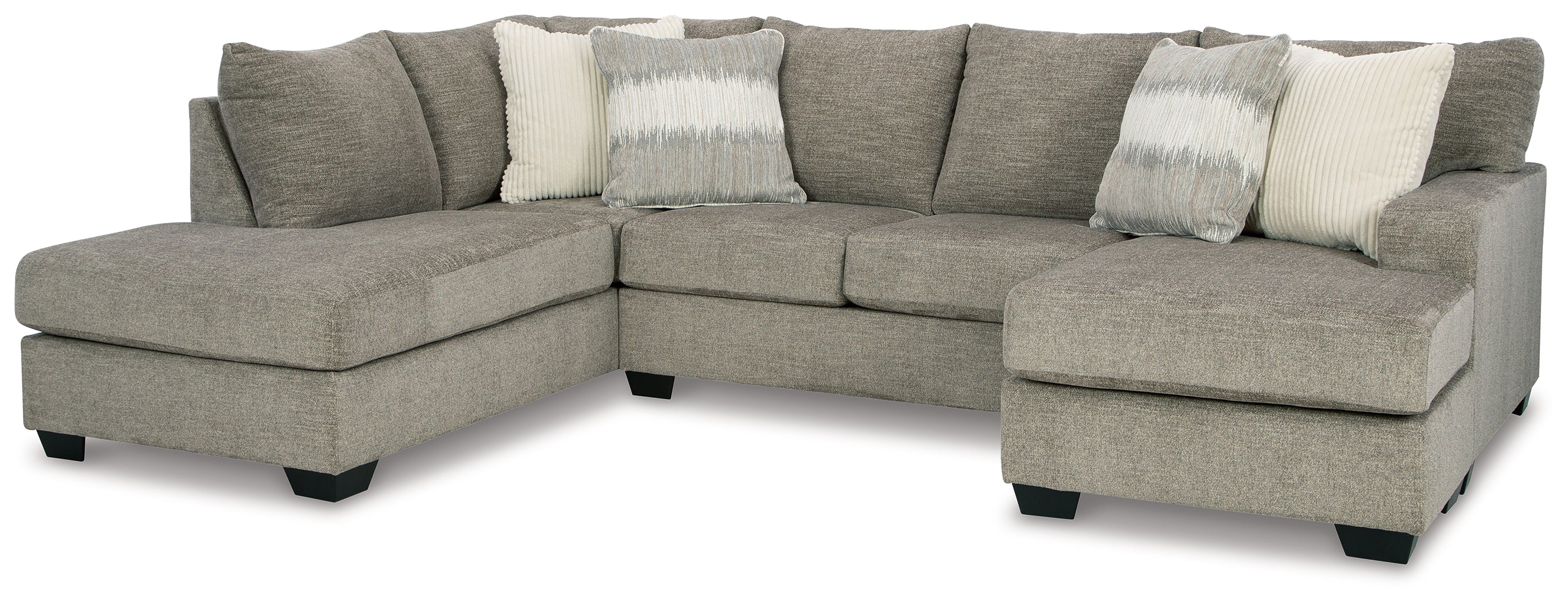 Includes 2 pieces: left-arm facing corner chaise and right-arm facing sofa chaise,