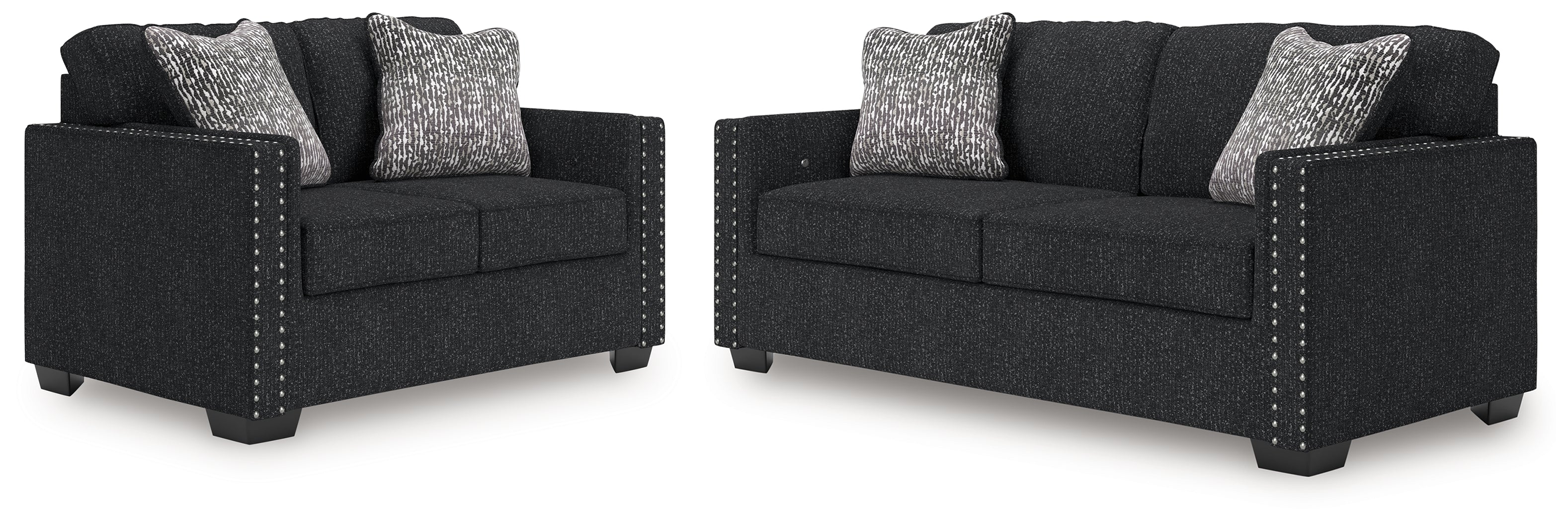 This stunning seating package leaves a lasting impression. Its cozy cushions, chic coal-colored upholstery and striking nailhead trim are a perfect blend of comfort and contemporary design. And here’s the showstopper—ambient red, white and blue LED lighting along the seating base. The look is simply wow.