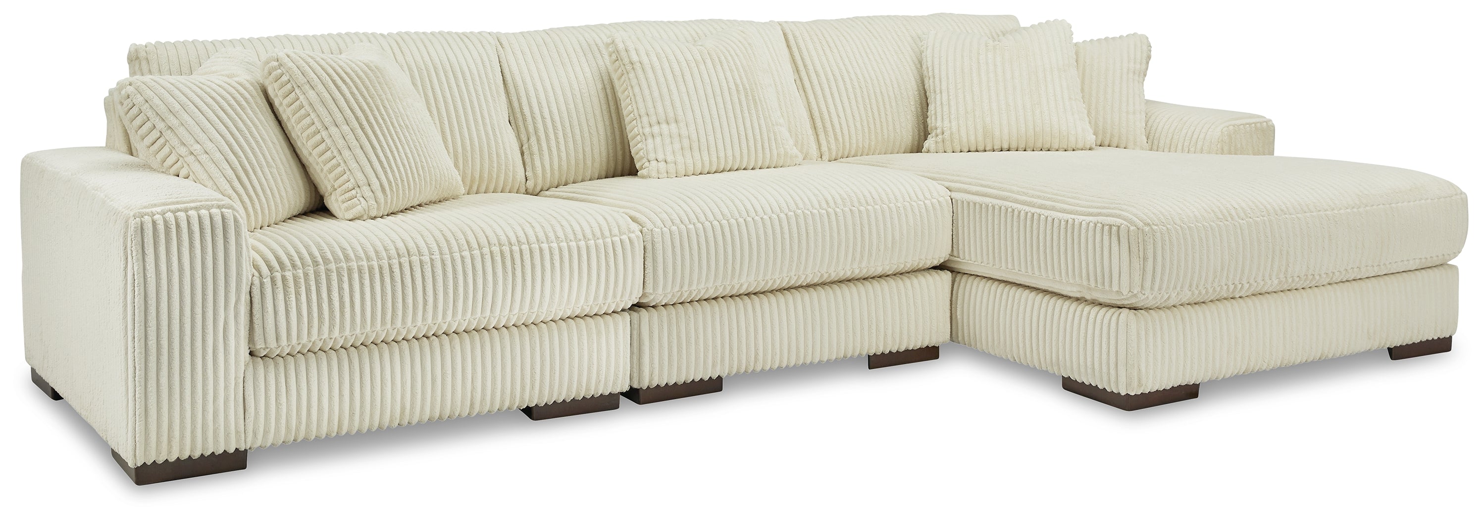 Plush and posh. Showcase your eye for on-trend texture with the statement-making cord upholstery of this sectional with chaise. Its stunningly soft fabric entices in an ivory hue, complementing contemporary color palettes. Sink into the cushions and plan to stay a while—this cozy living room centerpiece highlights your high-end approach to comfort and style.