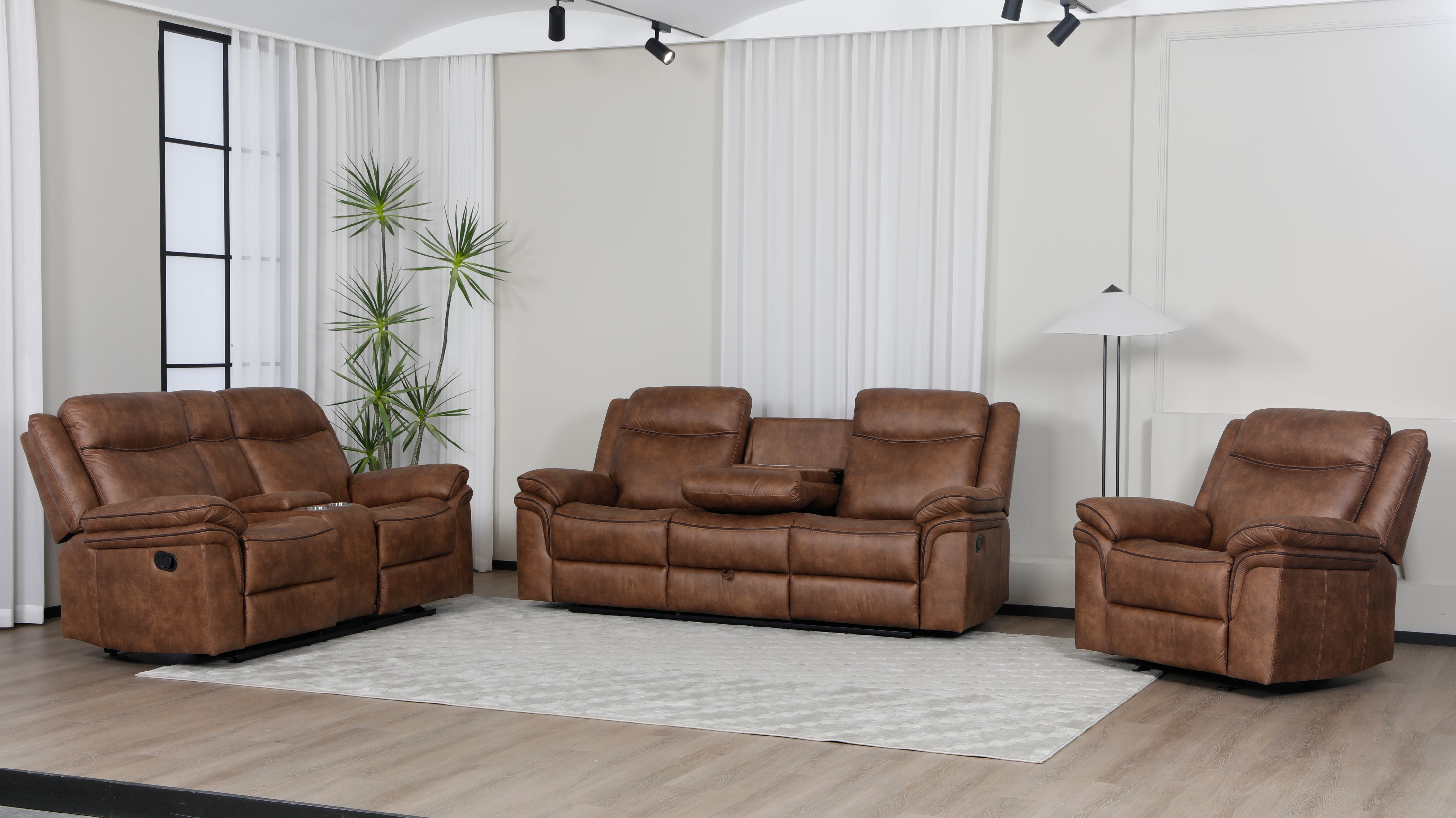 Transform your living space with this premium manual reclining sofa set, designed for ultimate relaxation and lasting style. Upholstered in rich, brown fabric, this set offers a warm, inviting look that complements any décor.