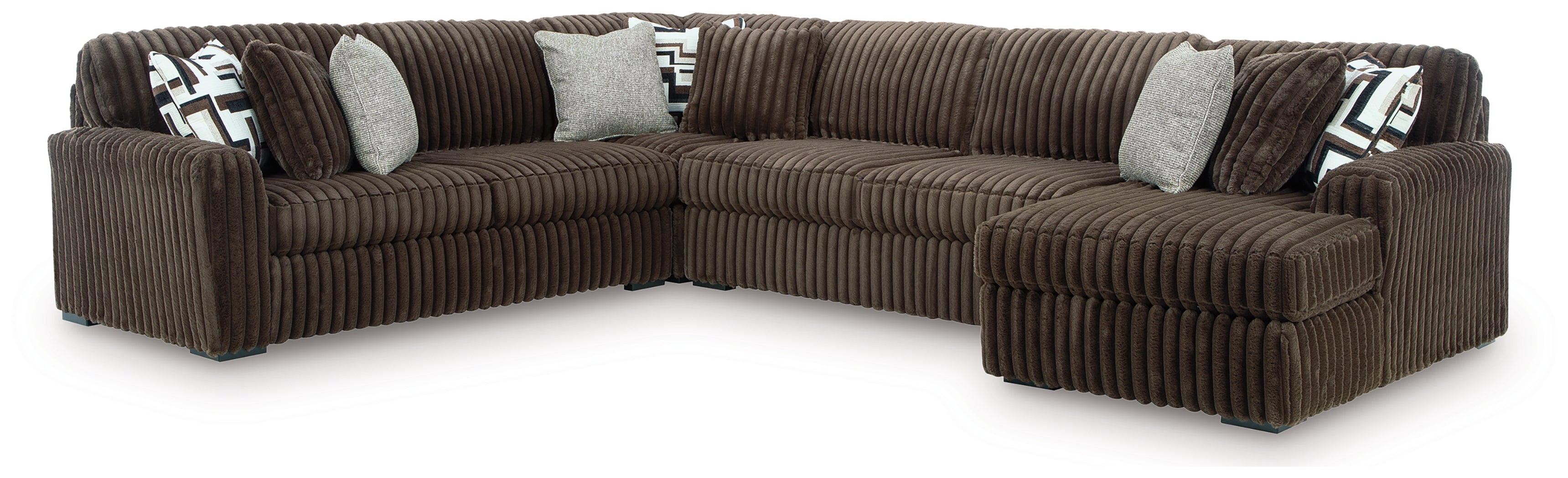 Includes 4 pieces: left-arm facing sofa, wedge, armless loveseat and right-arm facing corner chaise,