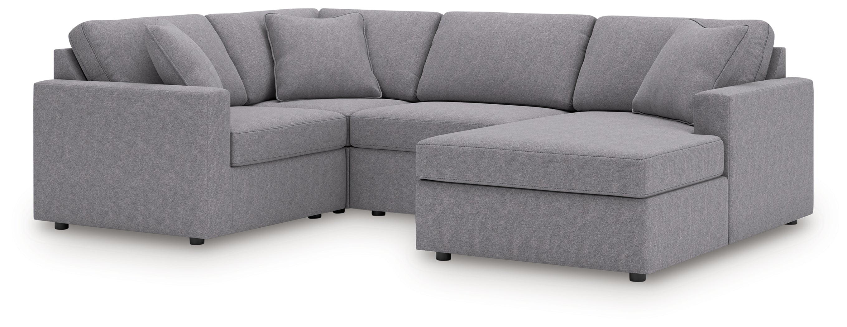 Includes 4 modular pieces: left-arm facing corner chair, armless chair, wedge and right-arm facing corner chaise,