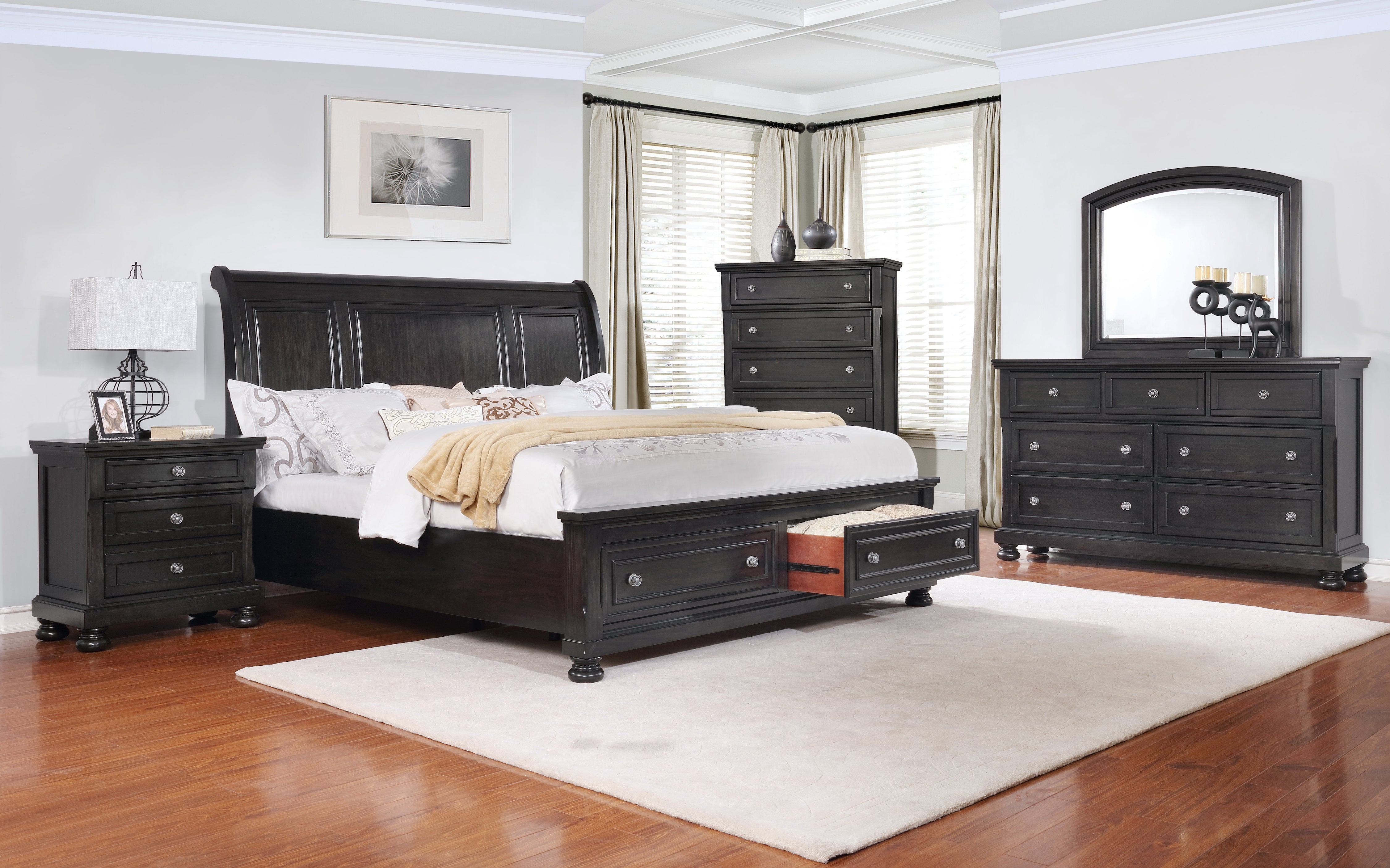 6 Piece Bedroom Set Includes: 1 King/Queen Bed, 1 Nightstand, 1 Dresser, and 1 Mirror