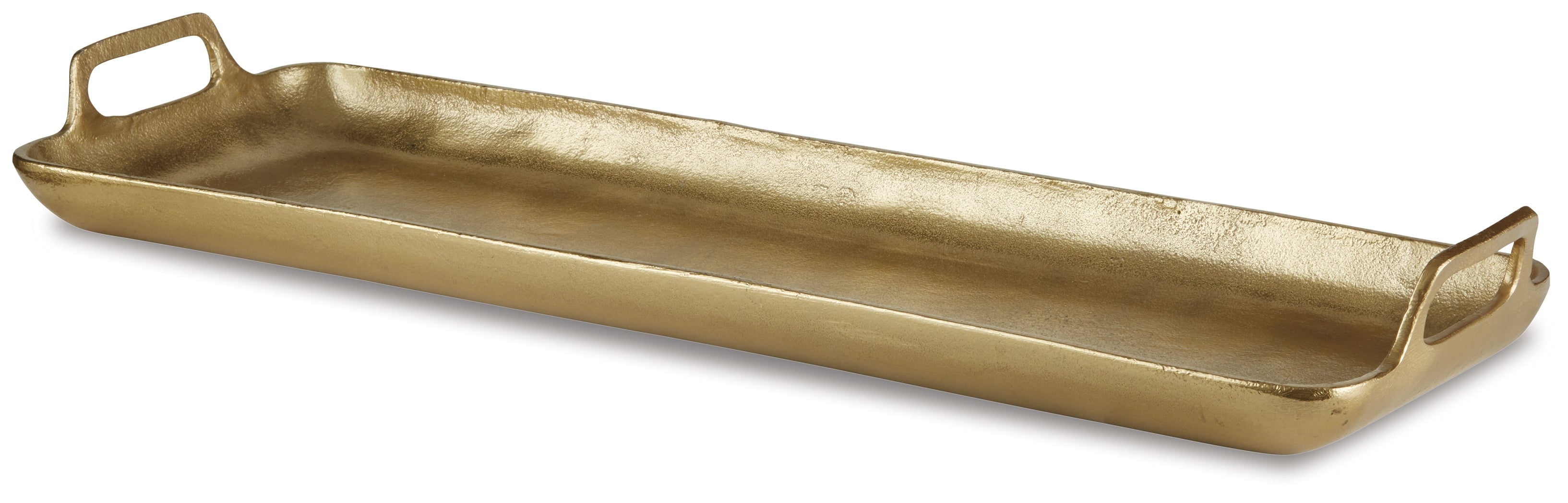 This tray was made for serving up superb style. Goldtone finished cast aluminum sets a sturdy foundation. This is the perfect fashionable piece for quickly adding versatility to your home.