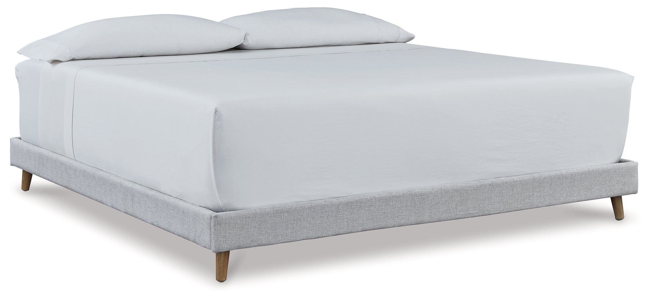 Simple living and streamlined design come together in one exceptional piece with this elegant platform bed. It\'s constructed with a low-profile upholstered frame, along with sturdy slats that support your mattress without the expense of a foundation or box spring.