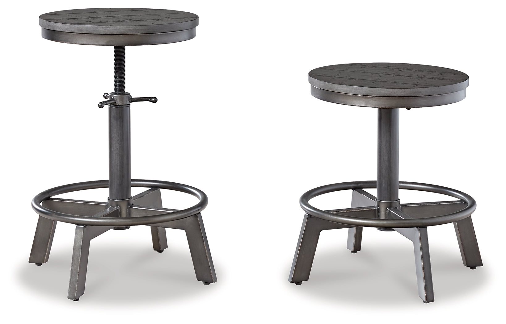 Make your home the hub for cool vibes with this stool. Its two-tone finish scheme of weathered gray and aged gunmetal is full of urban industrial swagger. The stool\'s adjustable height is accommodating for you and your guests. Add it behind your sofa with a long counter table for a dapper eating or working space.
