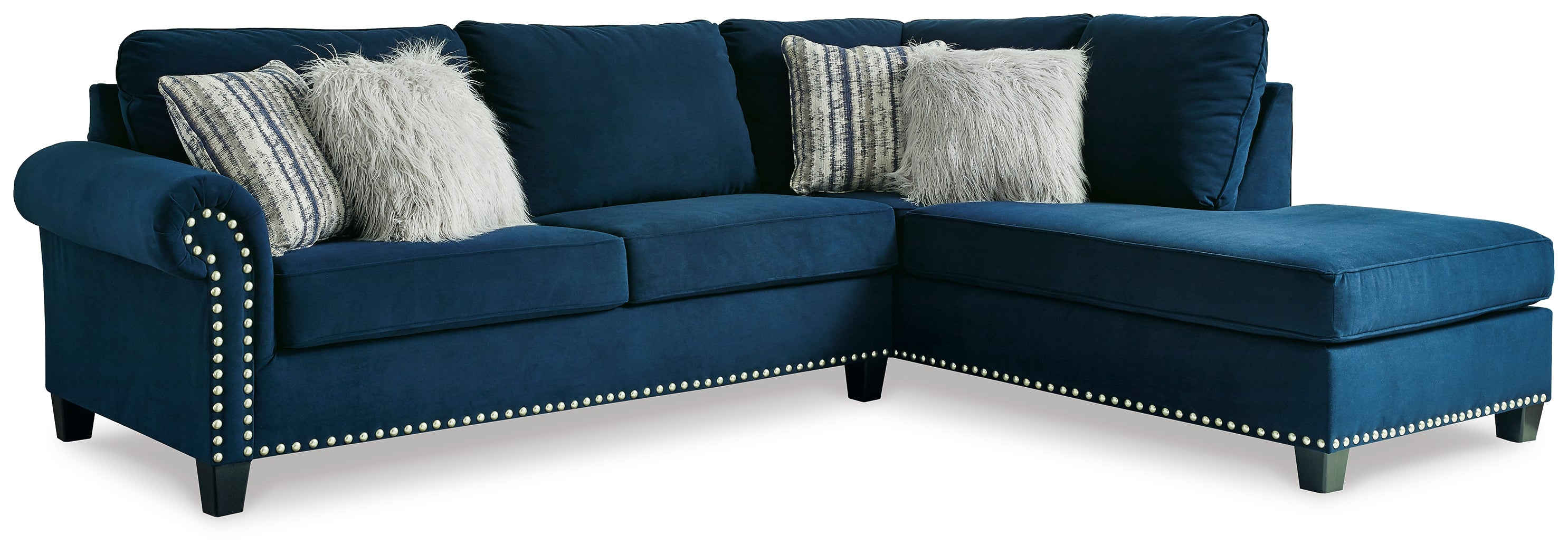 Includes 2 pieces: right-arm facing corner chaise and left-arm facing sofa,