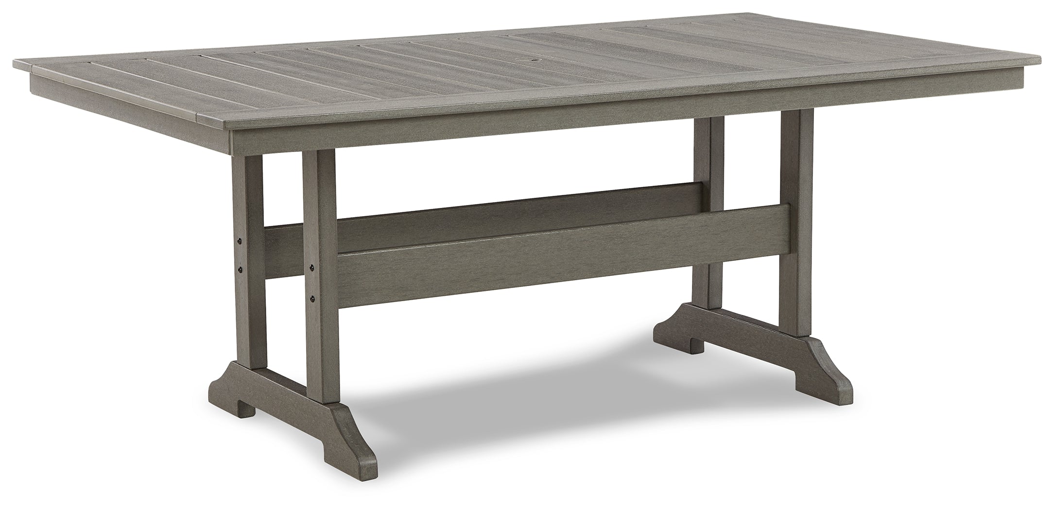 It’s the dawn of a new day for gray. Embrace the style trend with this outdoor dining table. Crafted of HDPE material that combines the exceptional durability and weather resistance you need with the “wood look” you love, the rectangular table takes alfresco living to a whole new level. Its slatted top infuses a plank-style, farmhouse-inspired touch that naturally sheds rainwater.